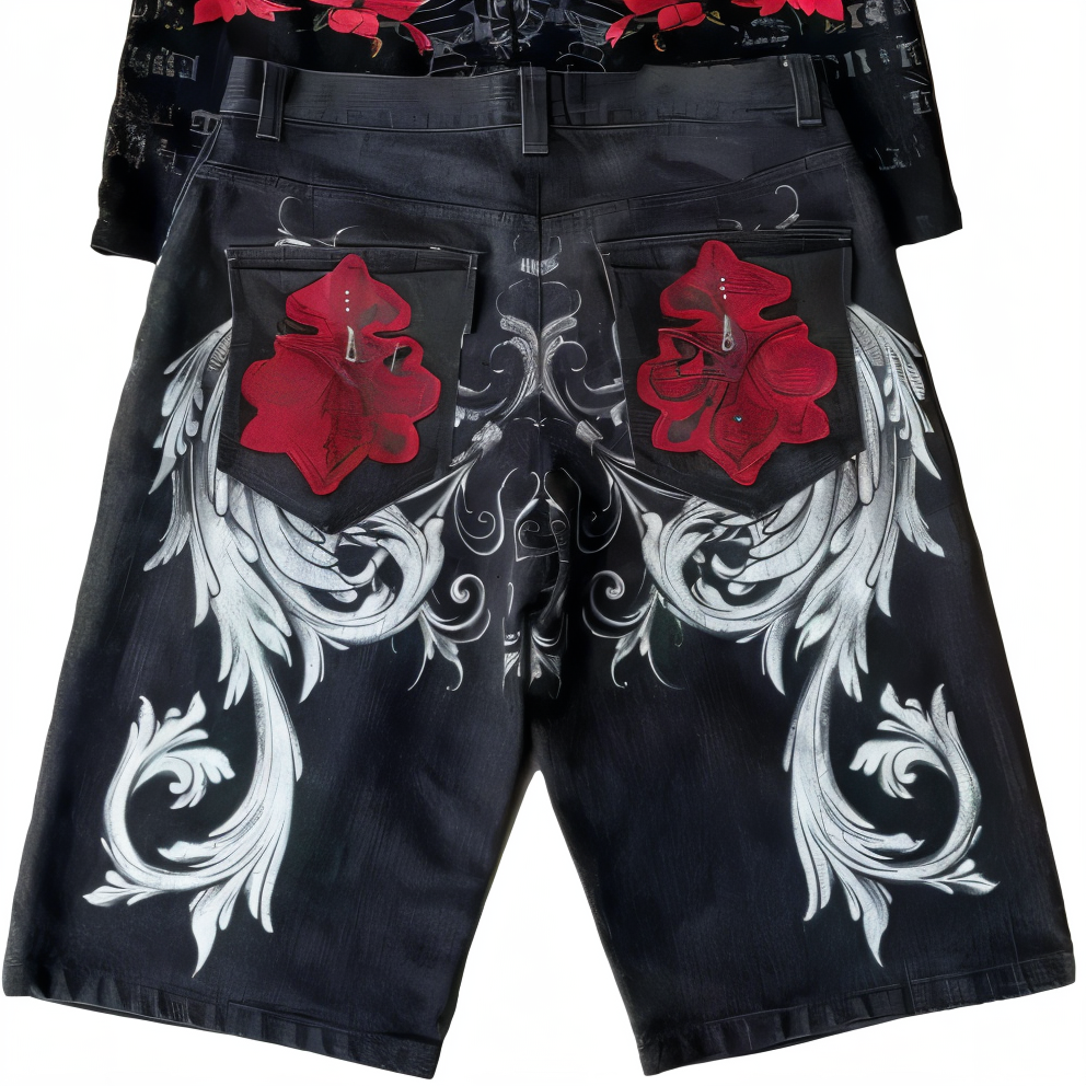 Turn heads this summer with embroidered gothic denim shorts – bold Y2K vibes for him and her