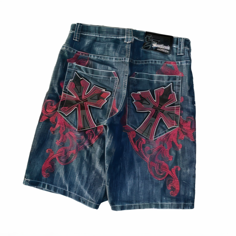 Turn heads this summer with embroidered gothic denim shorts – bold Y2K vibes for him and her