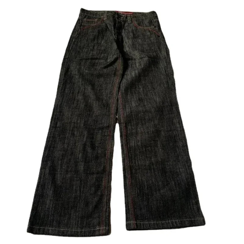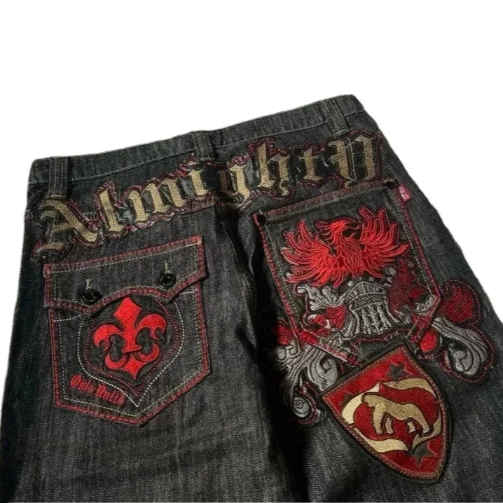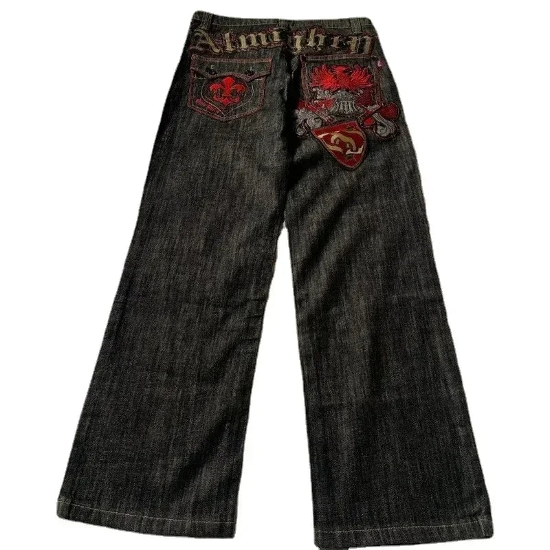 Wide-Leg Denim Y2K Knight Patchwork Jeans