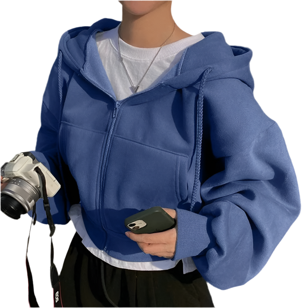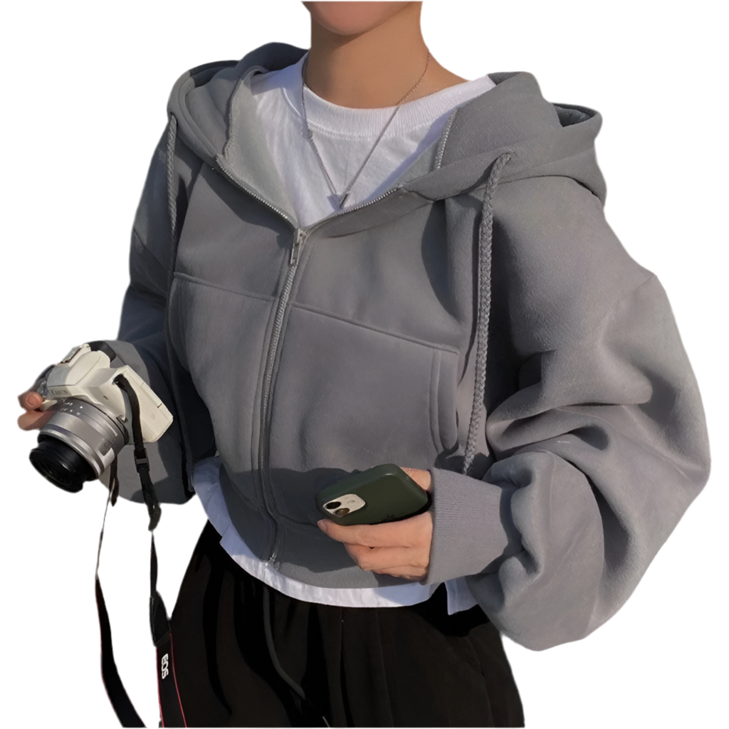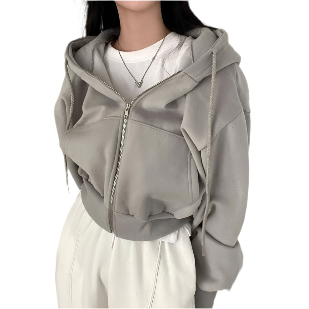 Zip Into Style - A Cropped Y2K Hoodie Blending Harajuku Edge with Cozy Autumn-Winter Comfort