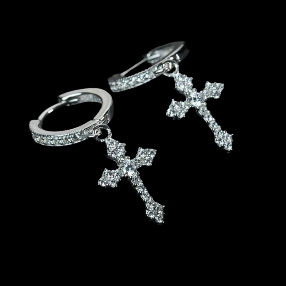 Strike Bold Style – Dazzling Arrow Cross Drop Earrings That Blend Hip-Hop Edge with Crystal Clarity.
