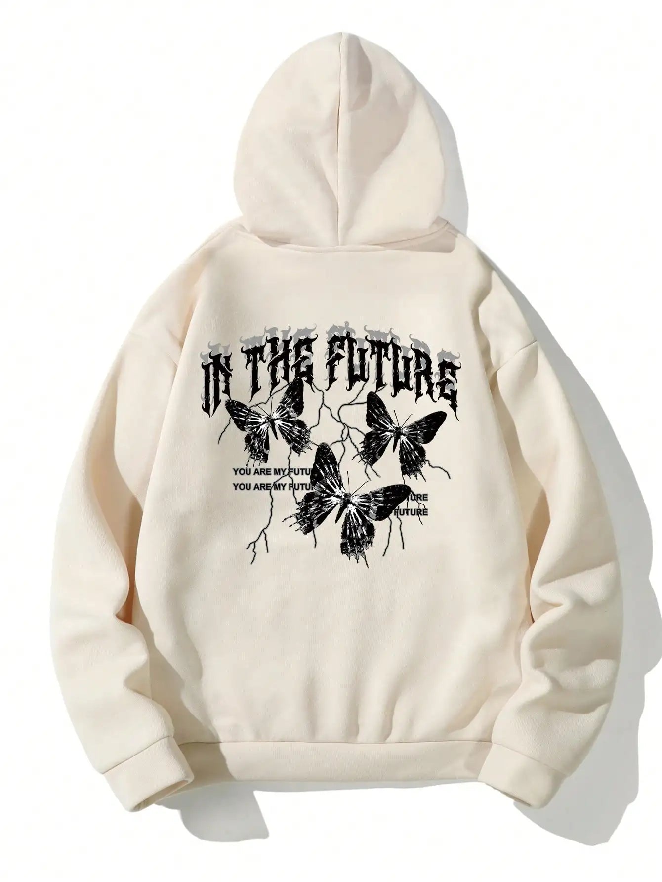 Dark Wings, Future Vibes – A bold fleece hoodie blending butterfly symbolism with hip-hop streetwear edge.
