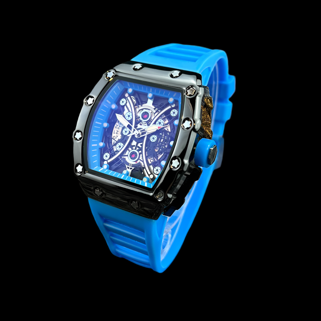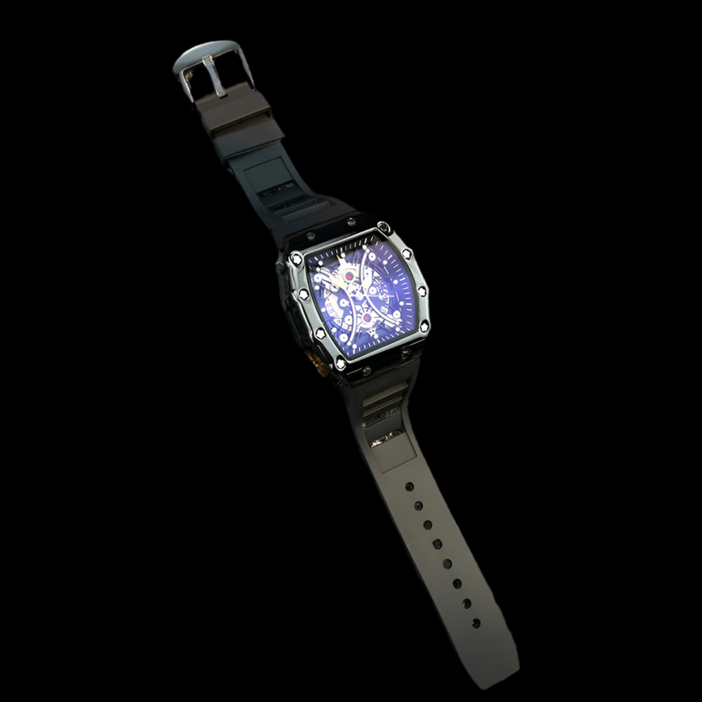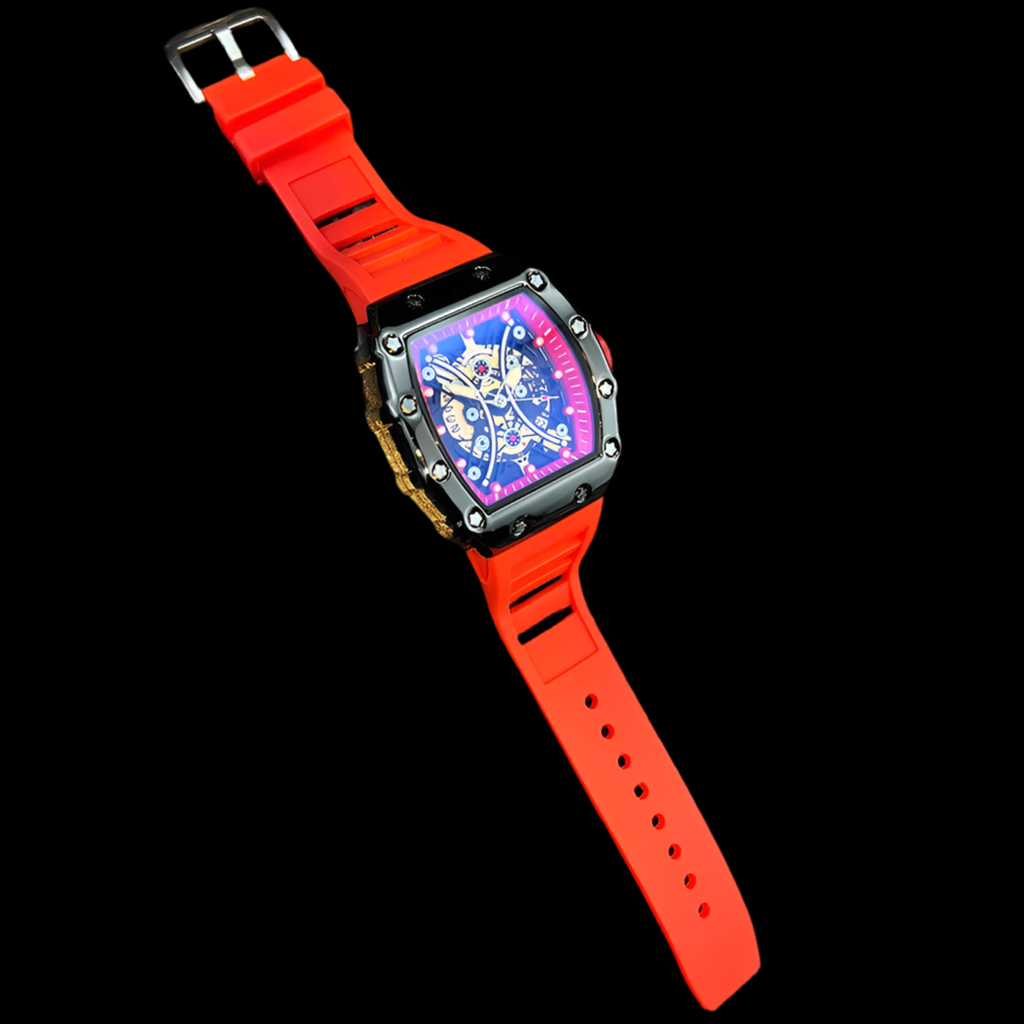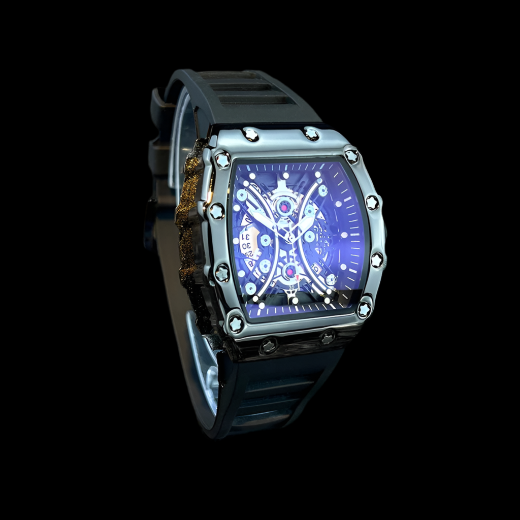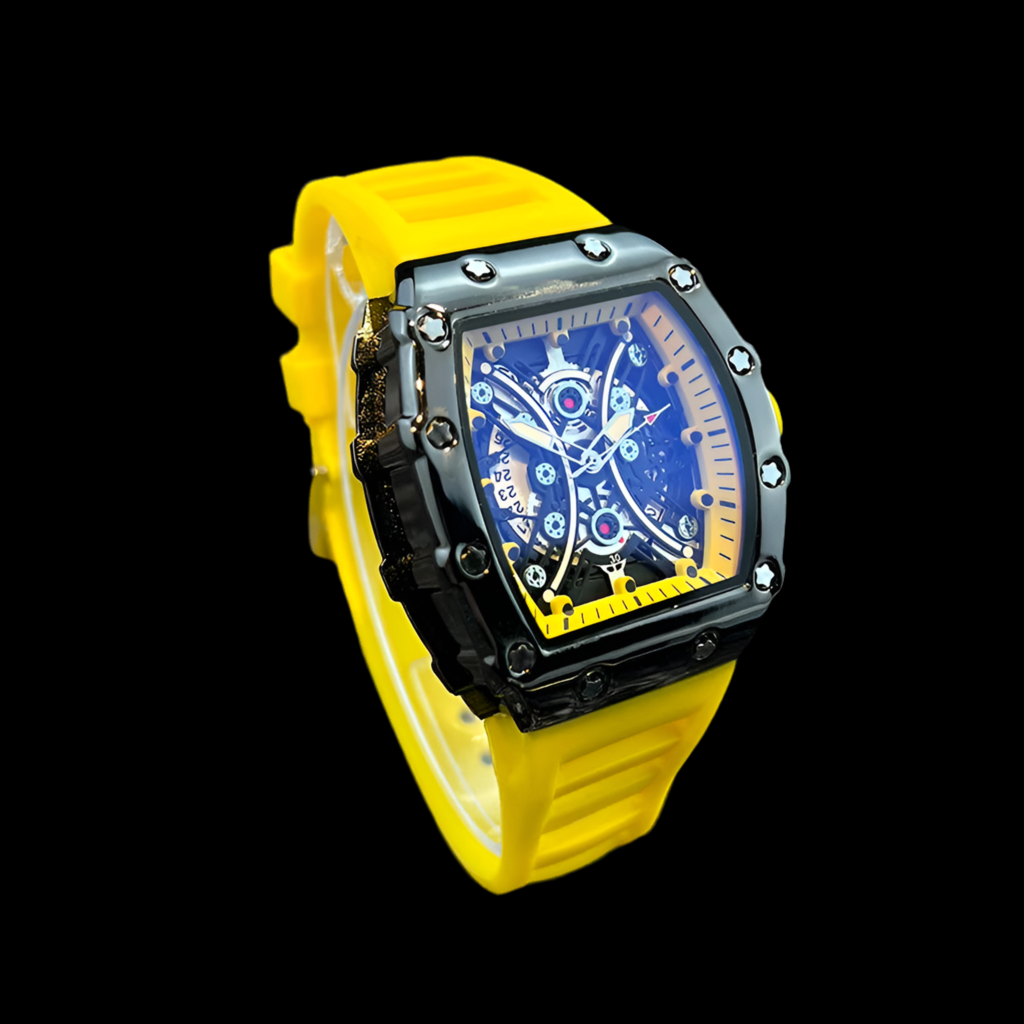 Stand Out in Style – A Barrel-Dial Sports Watch with Luminous Detail and Sleek Calendar Functionality.