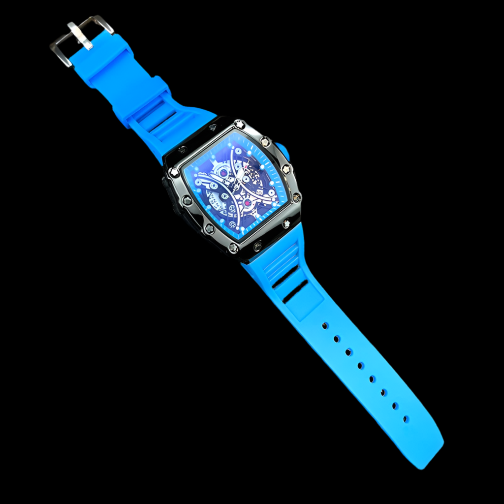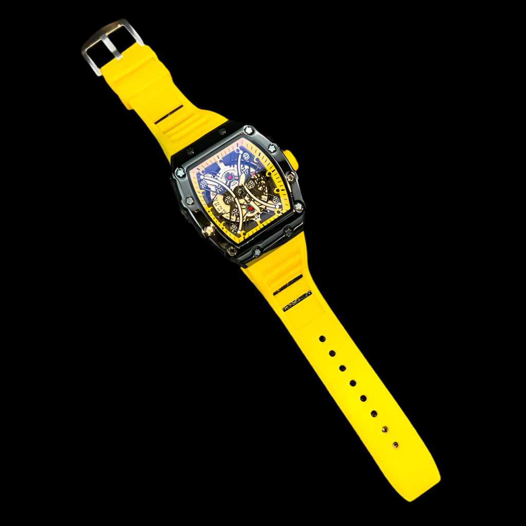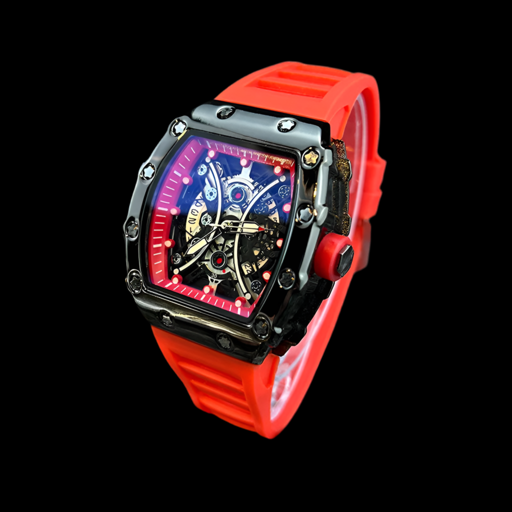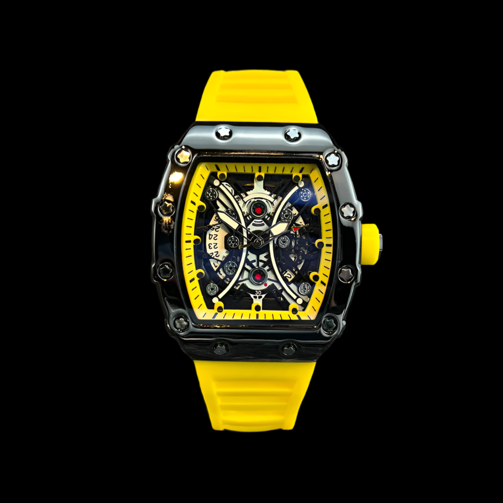Stand Out in Style – A Barrel-Dial Sports Watch with Luminous Detail and Sleek Calendar Functionality.