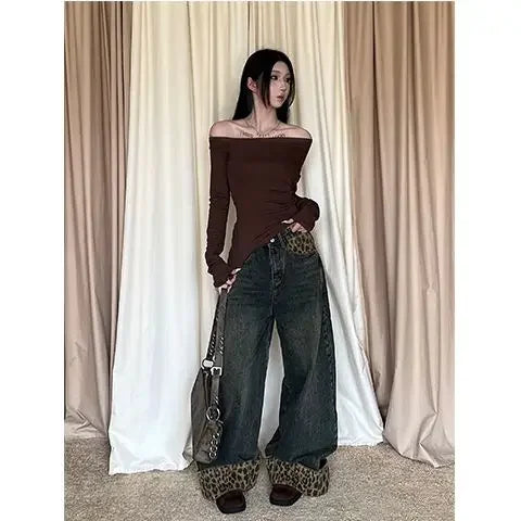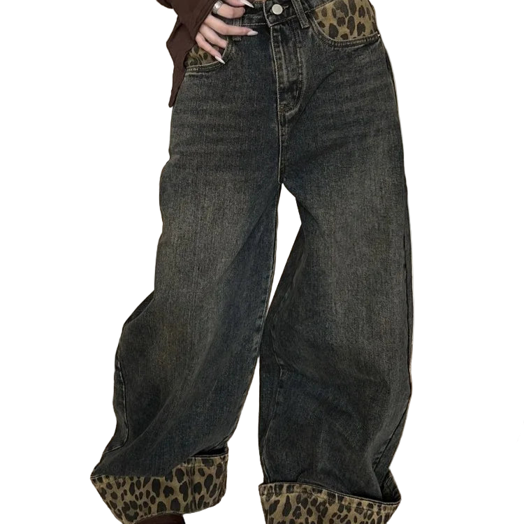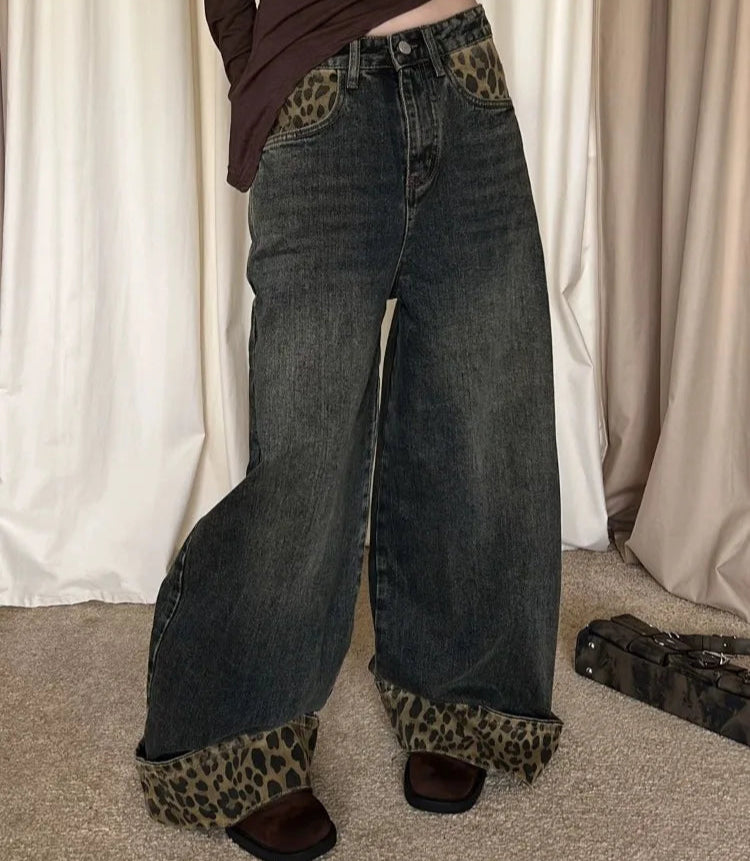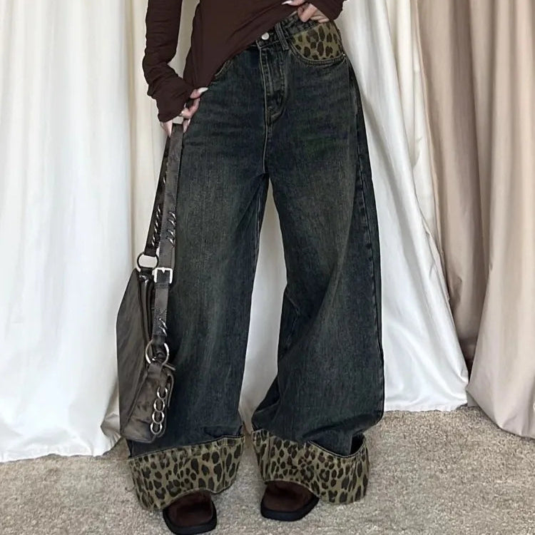 2025 Retro Wide Leg Harajuku Leopard Jeans