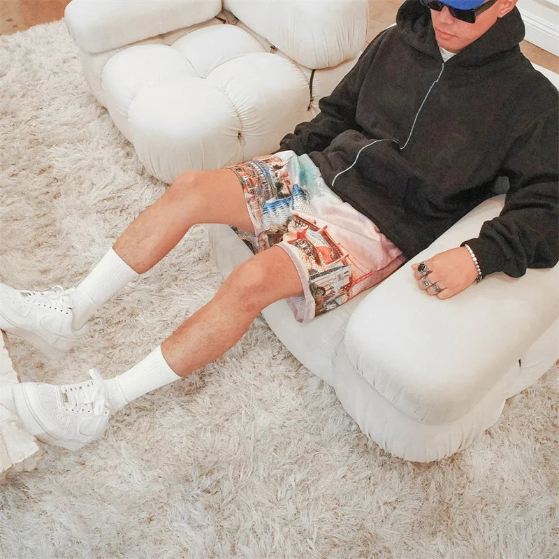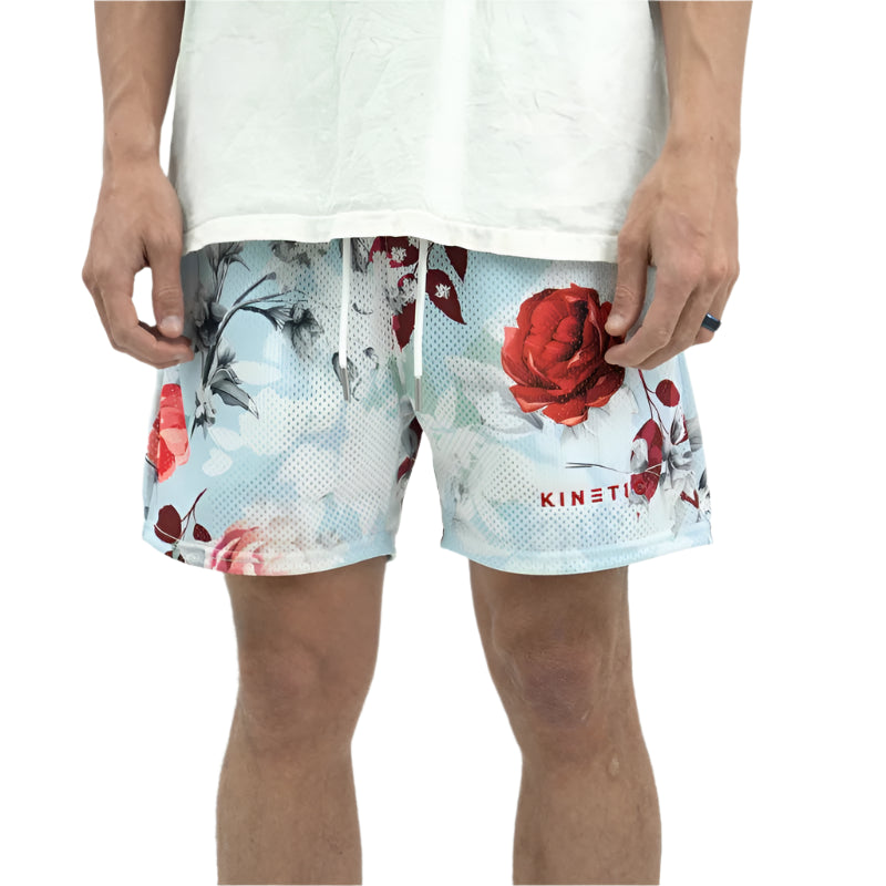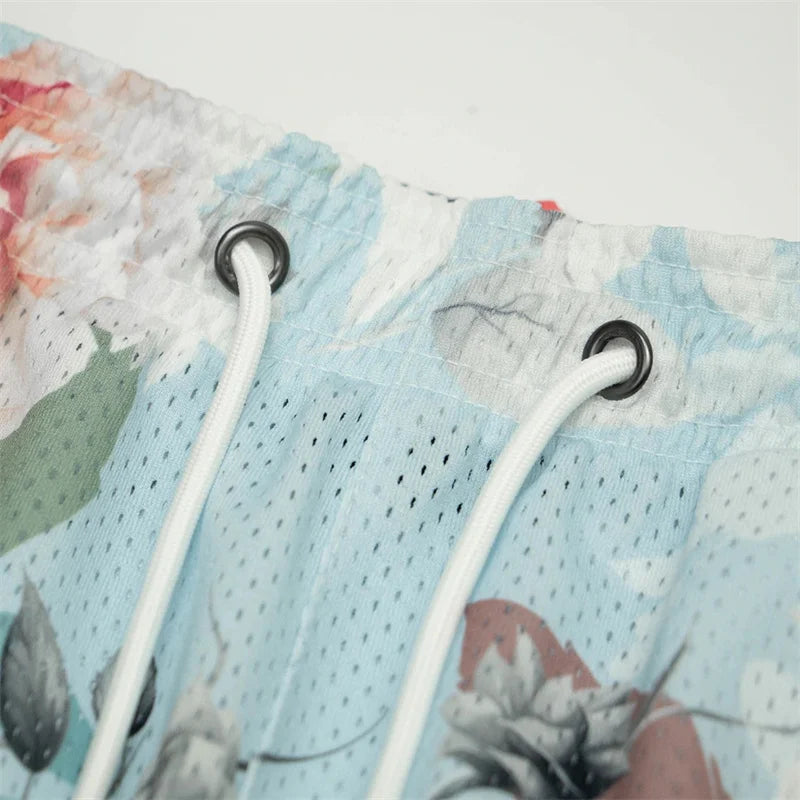 Bloom in Motion – Fast-dry shorts with bold rose embroidery made for summer streets and active heat.