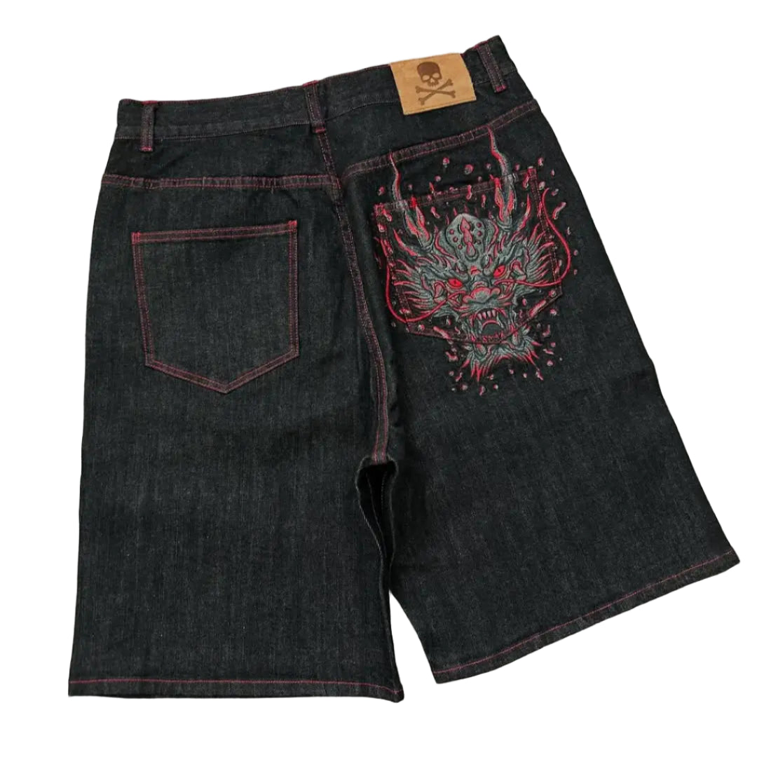 Streetwear fire meets summer comfort – loose-fit denim shorts with bold dragon prints for an unapologetic Y2K vibe.