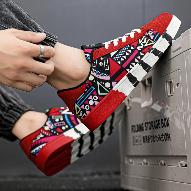 Step out in bold style with these graffiti-print lace-up sneakers built for comfort and flair.